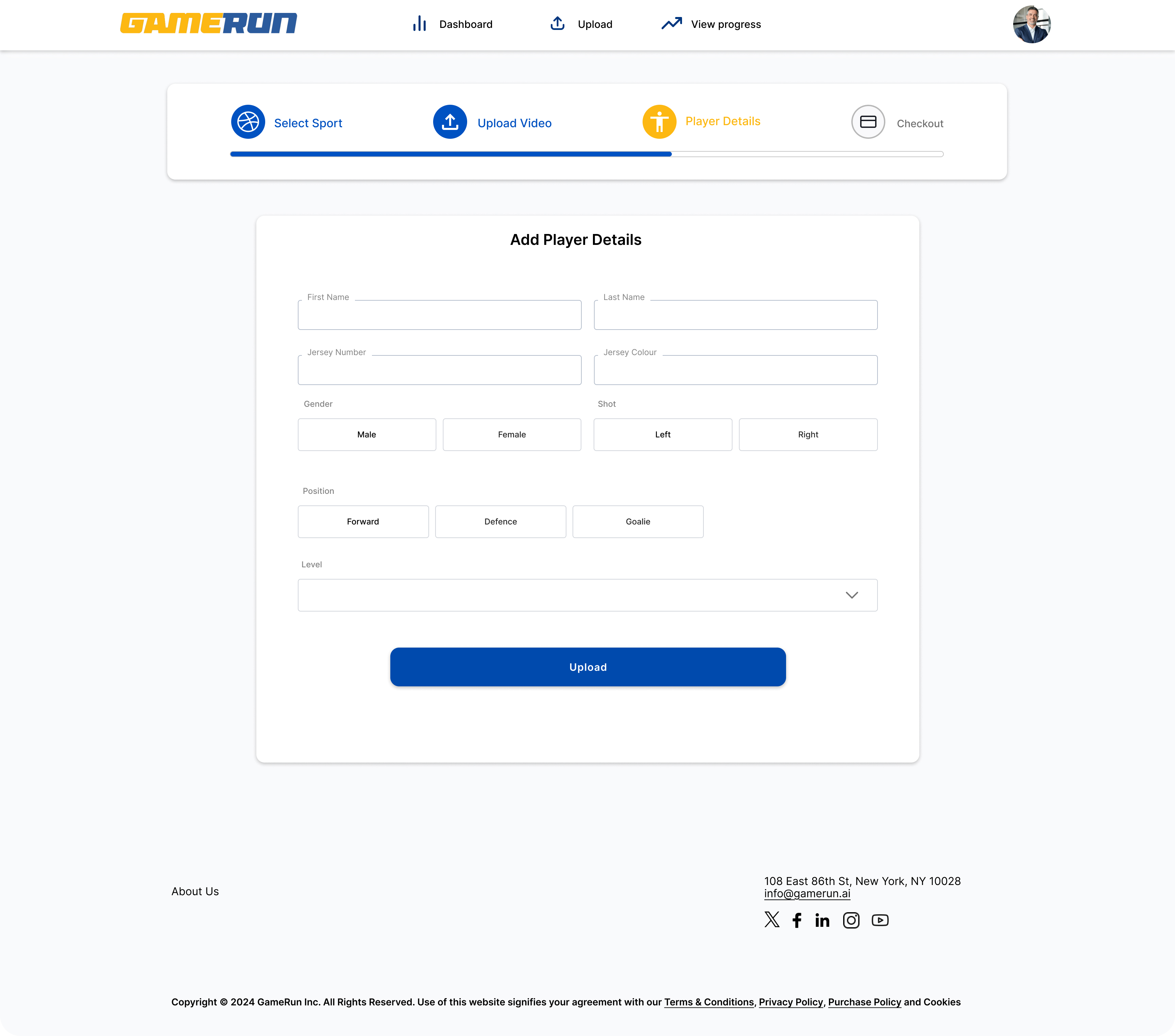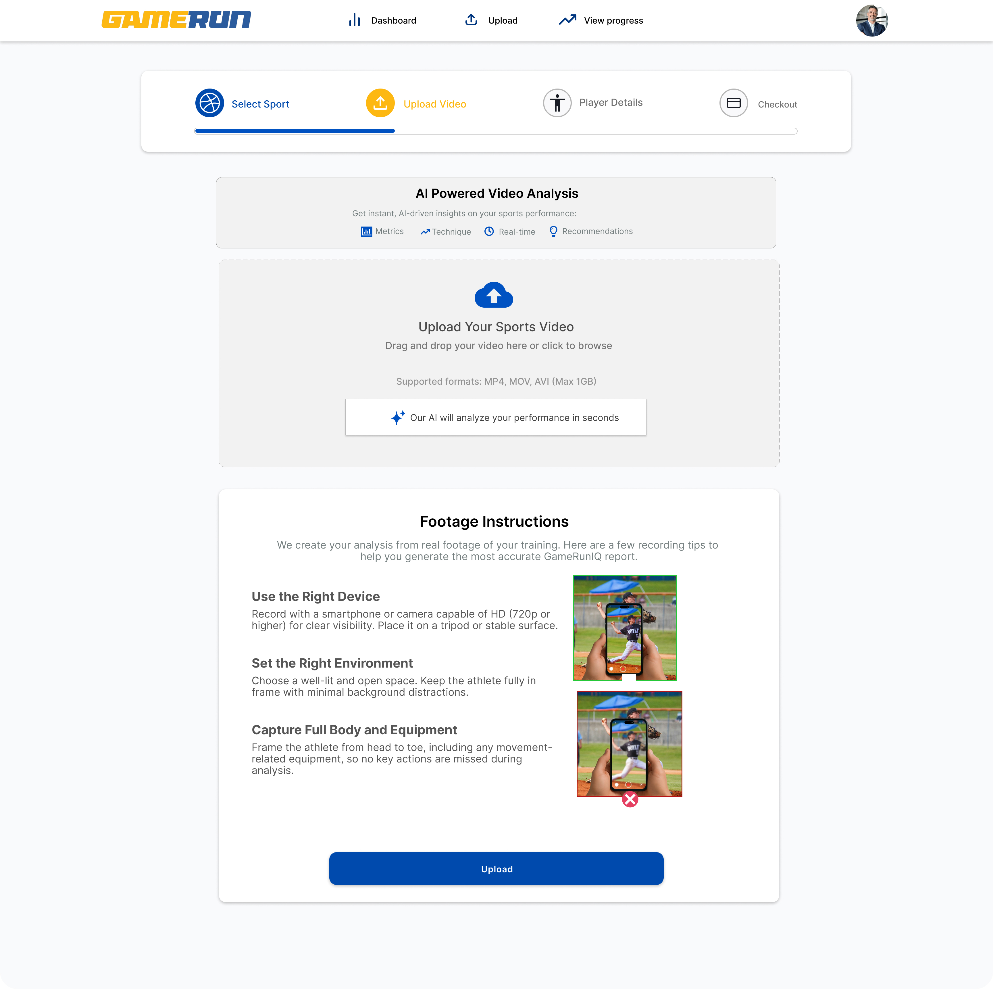 Click Upload Video and select your practice or game recording.