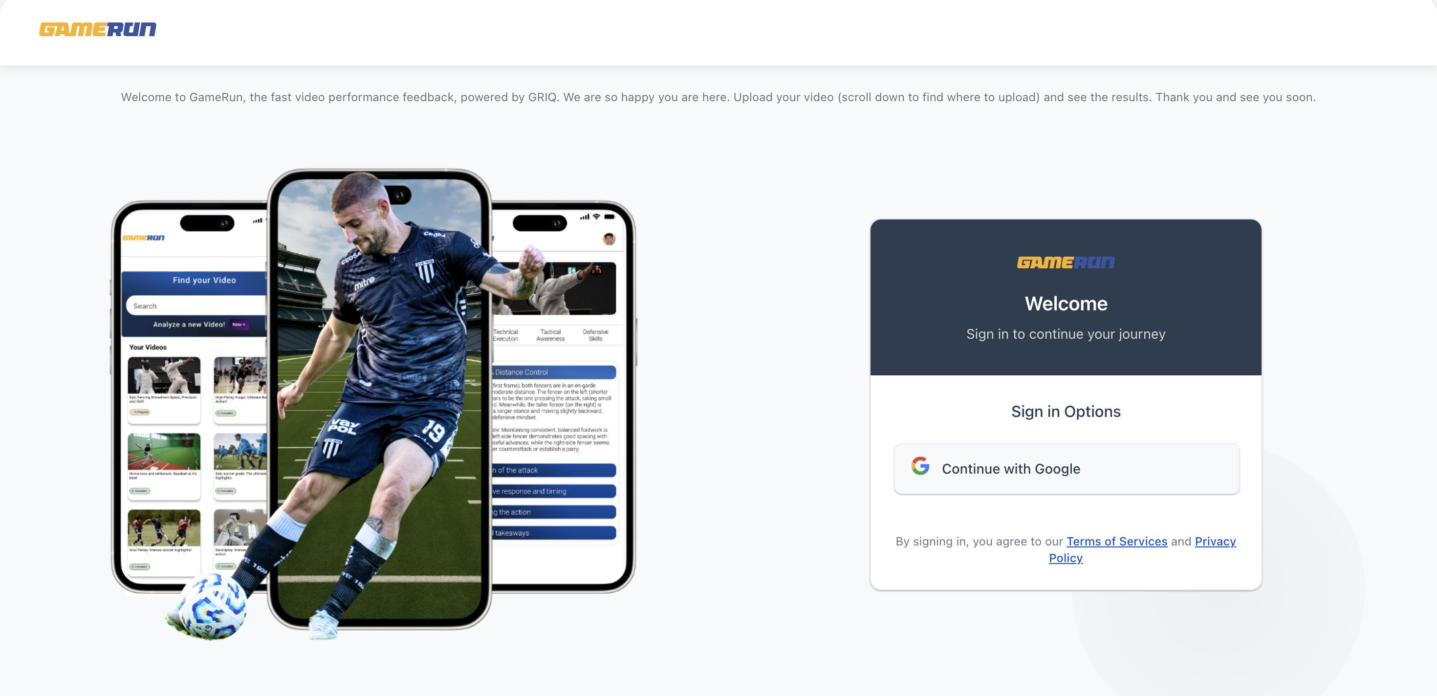 Open your browser and visit: app.gamerun.ai