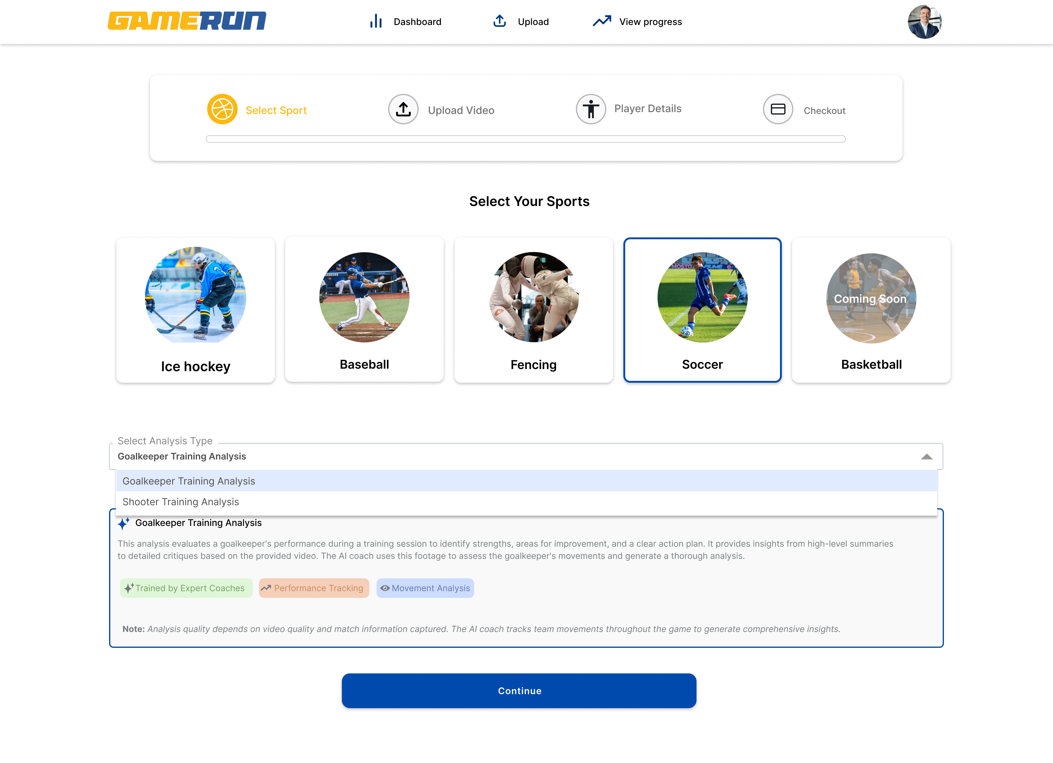 Step 4 – Select Your Sport & Analysis Type