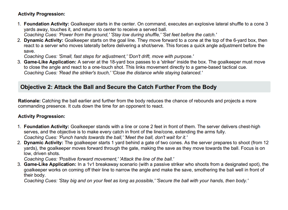 Dynamic Drills → to add speed and game-like movement